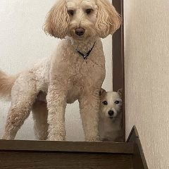 ゴールデンレトリバーのバディ&ソレイユのんびり生活にジャックラッセルテリアのグリンが襲来