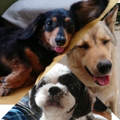 繁殖場の狭い檻に6年間も閉じ込められていたカニンヘンダックス、元飼い主に虐待を受け保健所に捨てられたシーズーMIX、生後1ヶ月で徳島県から我が家に来た大型犬雑種、別々に迎えた保護犬3匹と、のんびりドタバタな日々のブログです。